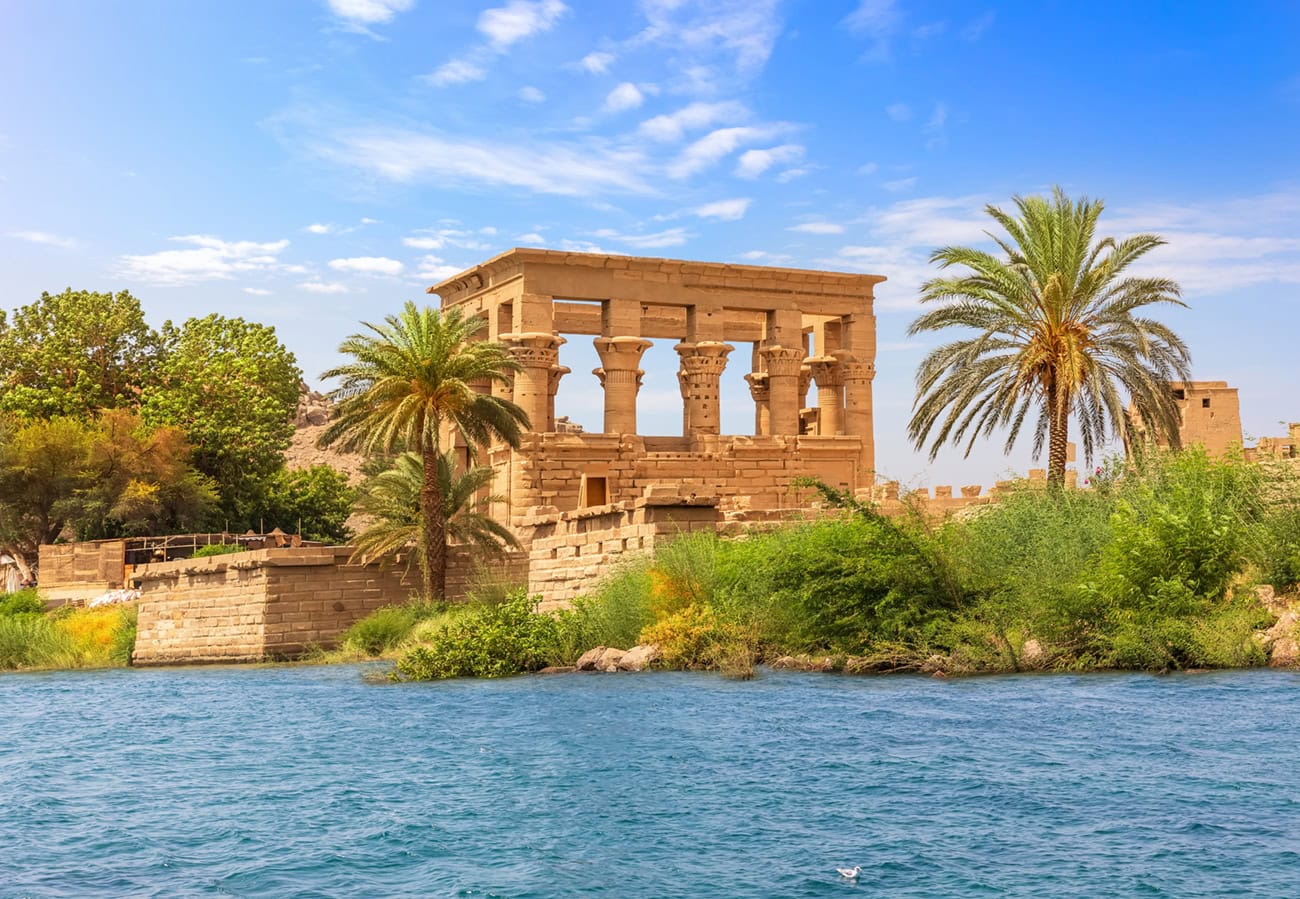 Wir fliegen bequem und direkt nach Assuan. Unsere Deutsch sprechende Studienreiseleitung empfängt uns am Flughafen. Wir beginnen mit dem Besuch des mächtigen Assuan-Staudamms (Eintritt inkl.). Mit 3,6 km Länge und 111 m Höhe ist die Staumauer ein gigantisches Meisterwerk. Wir genießen den malerischen Nassersee, bevor wir mit einem traditionellen Fischerboot auf die Insel Agilkia übersetzen. Dort erleben wir den fabelhaften Philae-Tempel (UNESCO-Weltkulturerbe, Eintritt inkl.), welcher der Schutz-Göttin Isis geweiht ist. Anschließend checken wir auf unserem 5-Sterne-Kreuzfahrtschiff ein, auf dem wir die ersten vier Nächte komfortabel verbringen.